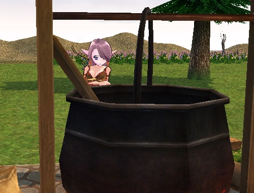 その農園には染色釜があったので、それを魔女の大釜に見立てて魔女ごっこ。